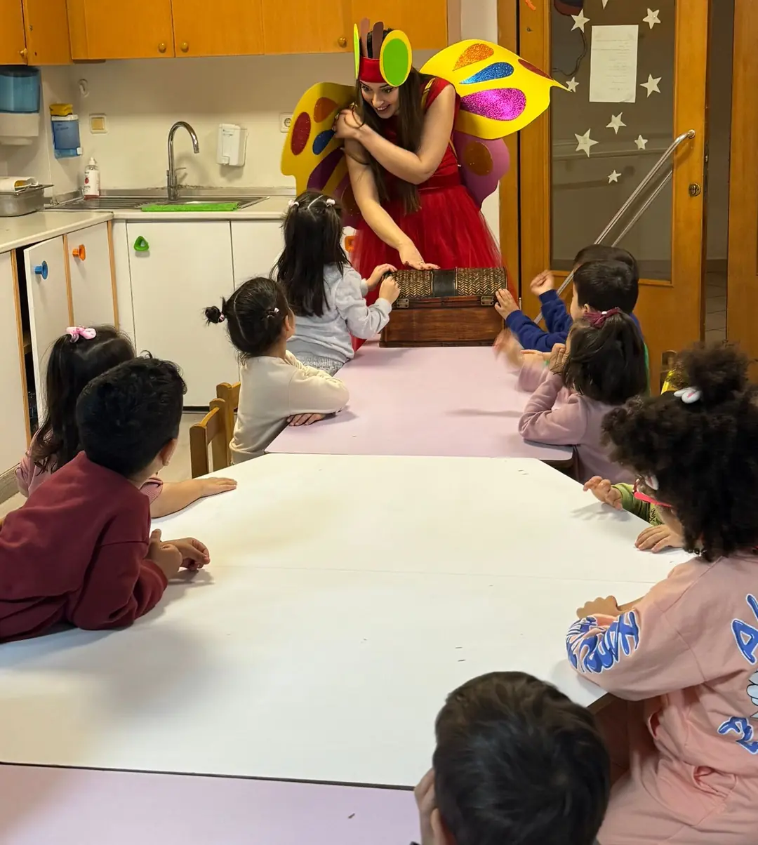Uzman eğitmen Hilal Arslantürk eşliğinde başlayan etkinlik, ısınma oyunları ve renkli aktivitelerle çocukların hem birbirleriyle kaynaşmasını hem de güne hazır hale gelmesini sağladı. Hikâye kısmında, tırtılın macerası aracılığıyla sağlıklı beslenme, iş birliği ve doğadaki değişim kavramları eğlenceli şekilde öğrenildi.